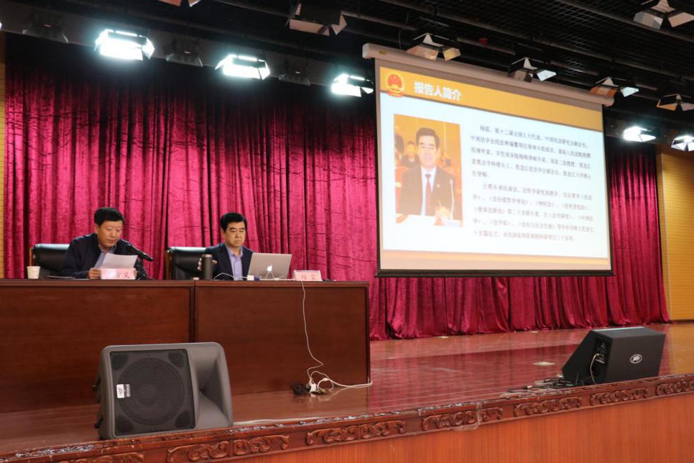 5月3日下午2:30,我校2017年第一期研究生导师论坛于主楼一楼报告厅举行。本期论坛特邀第十二届全国人大代表、中国民法研究会副会长、6686原党委书记、博士生导师杨震教授做了题为“《民法总则》解读与民法典立法走向”的专题报告。来自学校相关学院、部门的400余名师生参加了报告会。论坛由研究生学院院长焦方义教授主持。