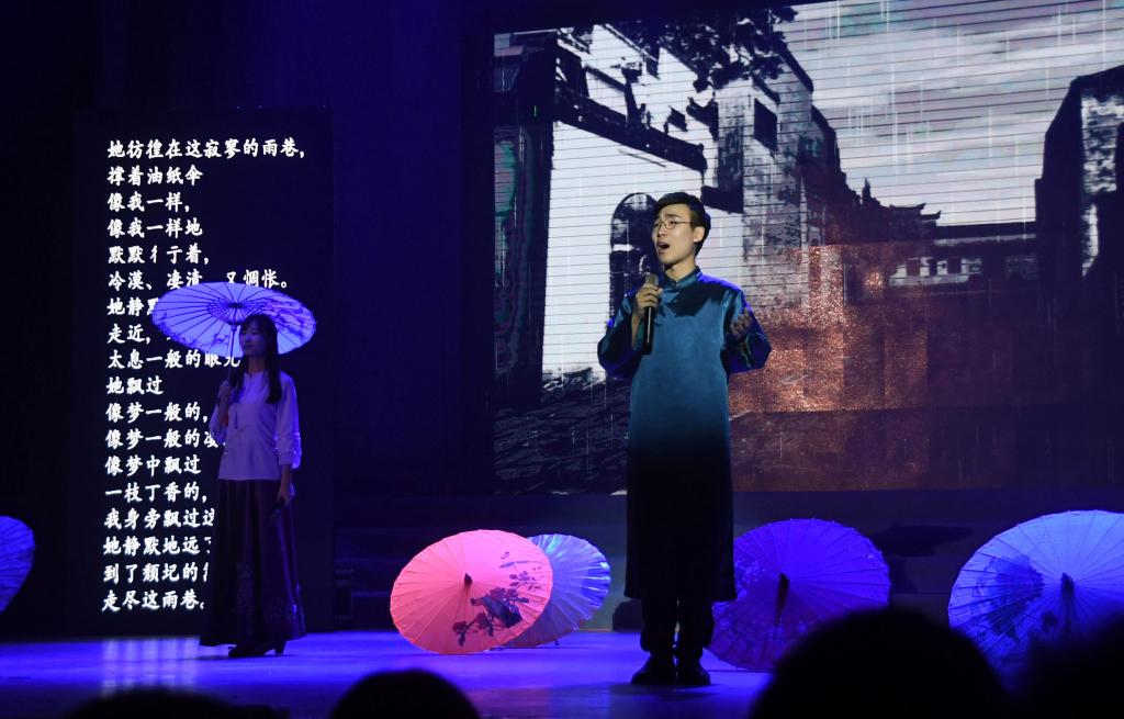 自1917年胡适先生的第一批新诗刊登在《新青年》上,新诗已走过百年,中国的新诗发展虽几经坎坷,但仍旧充满活力,中国诗人从未如此密切地和自己的时代、社会、生活拥抱。诗会现场,我校文学院用他们激昂的歌声和动人的表演带领现场的观众回到行走在刀剑与烽火、眼泪和鲜血的《新青年》杂志社;回到以诗会友、以梦为马的北平。