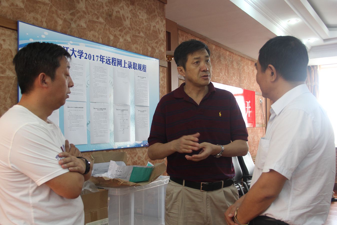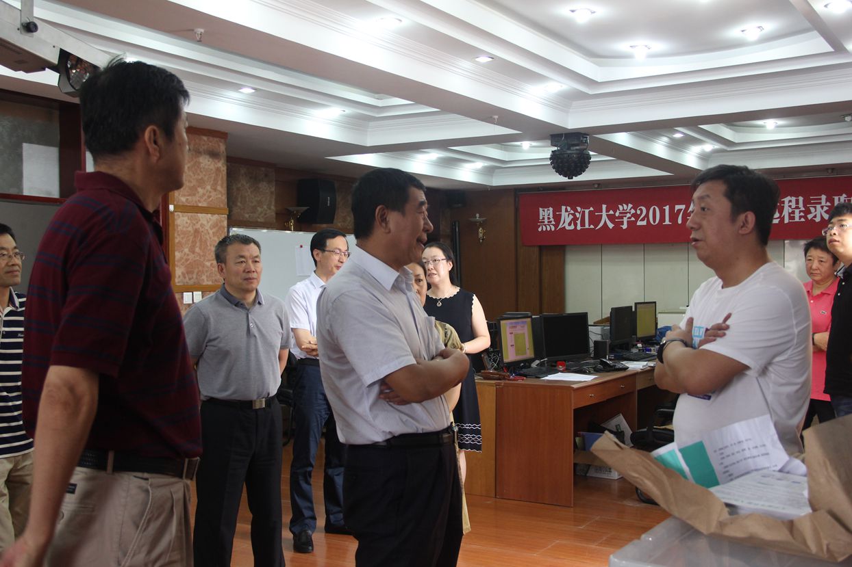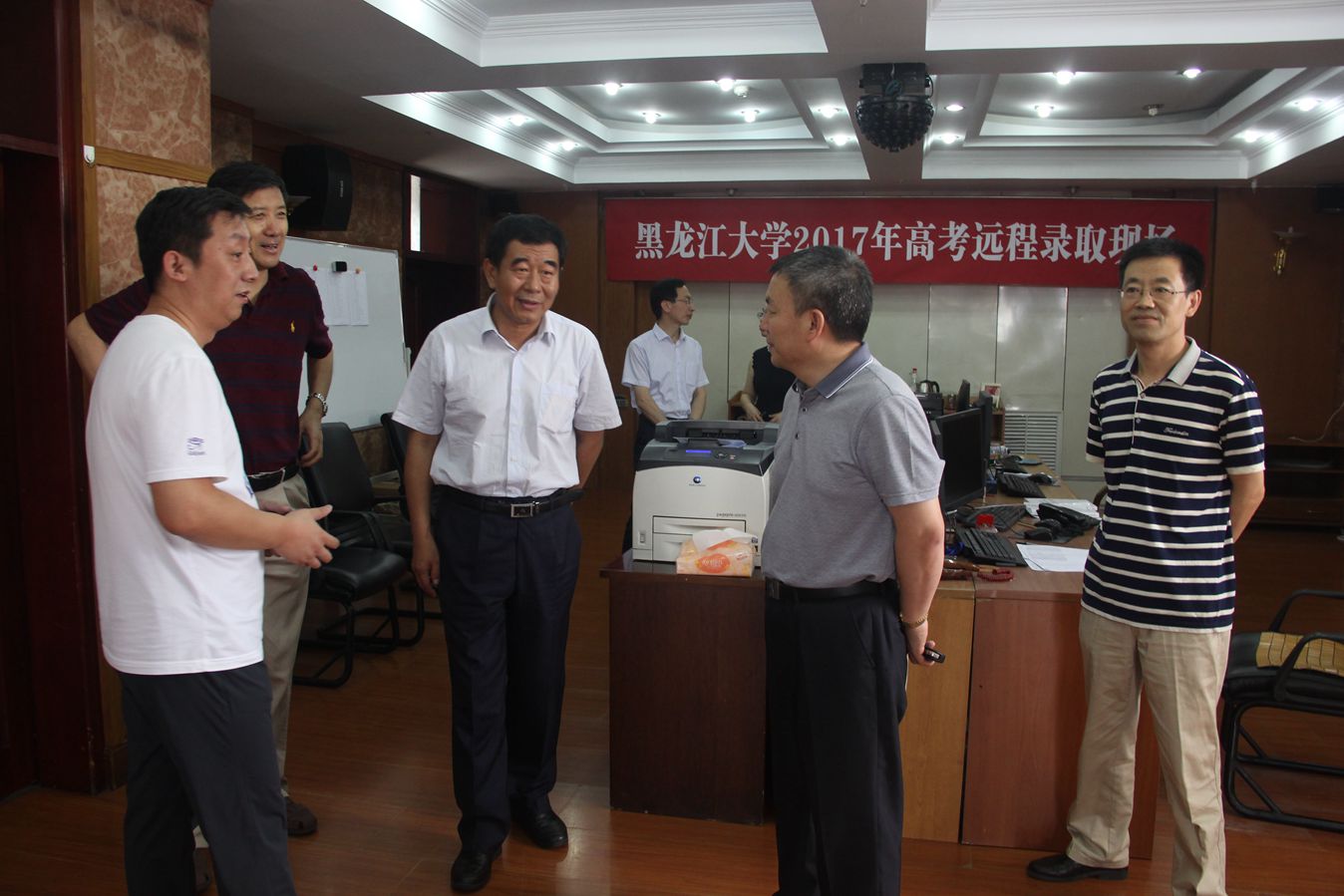 7月8日上午,校党委书记刘德权、党委副书记曲科军、副校长王司瑜、纪委书记荣盘祥亲临招生录取现场,检查、指导我校2017年高考远程录取工作。招生就业处李石处长向校领导汇报了目前录取情况并介绍了招生录取流程等相关工作。校领导详细的听取了部分省提前批录取情况,并观看了招生工作人员现场演示投档、阅档和录取的全过程。校领导对工作在招生一线的全体人员表示亲切慰问,并希望同志们再接再厉,圆满完成今年的招生工作。