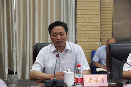 付宏刚教授感谢李海涛副省长和赵万山副秘书长的到来,感谢省委省政府对人才的关注和尊重。他从自身的工作经历、团队研究情况、化学学科排名和整体实力、成果转化等方面简要进行了介绍。同时,他还对我校作风建设、文化校园建设、学生培养、师德师风建设等方面进行了介绍。他结合我校实际对下一步的工作提出了三方面的构想。一是整合校内相关产业资源,建立一体化科技创新产业园,搭建留学生创新创业平台;二是建议双一流学科建设采取“项目制”的形式;三是希望政府在相关方面能够给予高校一定的自主权。