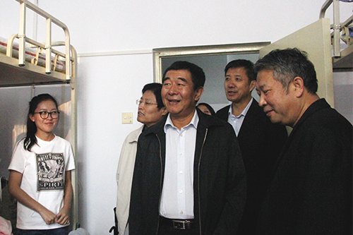 8月29日,我校喜迎2017级新同学。校领导来到主楼广场、体育馆、“绿色通道”接待处等迎新办公地点检查工作,亲切问候工作人员和志愿者们,详细了解新生报到情况。当晚,校领导深入学生宿舍走访,特别到新增设的禹志园公寓,查看宿舍设施条件,与新生进行亲切交流,叮嘱他们尽快适应大学生活,努力学习,报效祖国。