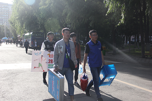 由于迎新期间人流量大大增加,我校保卫处为确保校园安全,在校园内重点位置增派安保人员,以保证新生和家长出行顺畅。我校各区食堂的工作人员也因新生及家长的到来忙碌着,为新生和家长提供可口的饭菜。学生志愿者接过新生和家长的行李,往返于报到点和寝室楼之间。公寓辅导员、宿舍管理员等候在寝室楼前,热情欢迎新同学的到来。适逢哈尔滨天气降温,全体工作人员忙碌于迎新的各个现场,温暖着新生和家长们的心。