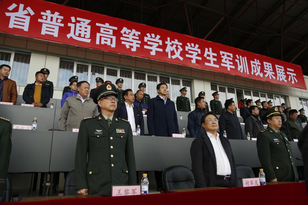 省军区副司令员邱月潮少将、省政府副秘书长邢爱国、省军区战备建设局局长石宝军大校、省教育厅副厅长姜同河,以及省内各普通高等学校、各市(地)教育行政部门、军事机关学生军训分管领导和武装部长,以及驻省各部队学生军训分管领导出席活动,我校党委副书记曲科军出席了此次活动。来自全省16所院校的2000余名学生参加了阅兵式、分列式和有关军事科目的汇报表演。