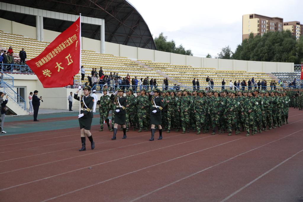 在军训成果展示中,由我校经济与工商管理学院2017级102名女生组成的方队,以严整的军容、坚毅的目光、嘹亮的口号、飒爽的英姿和昂扬的斗志参加了阅兵式和分列式,充分展现出了黑大学子爱军精武、奋发向上的精神风貌。在军事科目的汇报表演中,由我校电子工程学院2017级225名热血男儿组成的男子捕俘拳方阵声势震天,一招一式虎虎生风,以实际行动展示了他们时刻准备着用青春热血报效祖国的家国情怀。