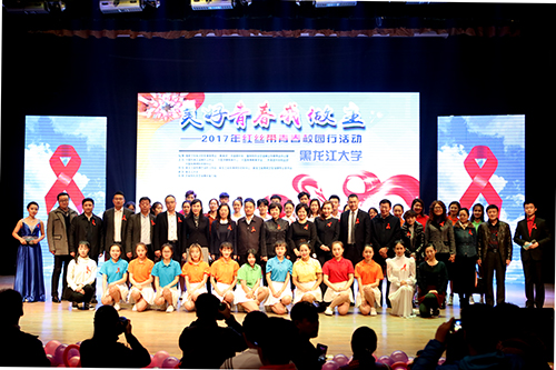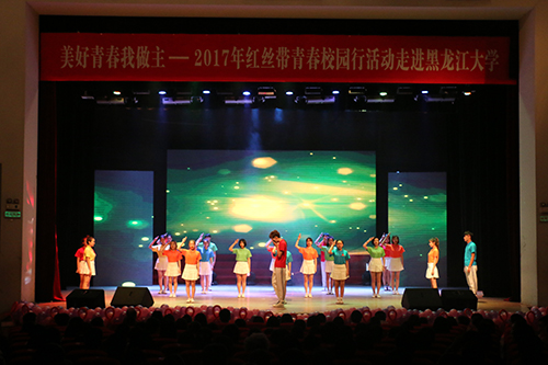 为了普及艾滋病防控知识,提升大学生的防艾意识,传递青春正能量,10月31日晚,由我校承办的“美好青春我做主”——红丝带青春校园行活动在我校音乐厅举行。中国性病艾滋病防治协会秘书长王新伦、共青团黑龙江委员会副书记陈凯云、黑龙江省性病艾滋病防治协会会长邢济春,省卫计委疾控处、省疾病预防控制中心、省教育厅体卫艺处等有关负责同志,红丝带健康大使鞠萍、沈娜,我校党委副书记丁宏、青年师生代表等共计1000余人参加了此次活动。