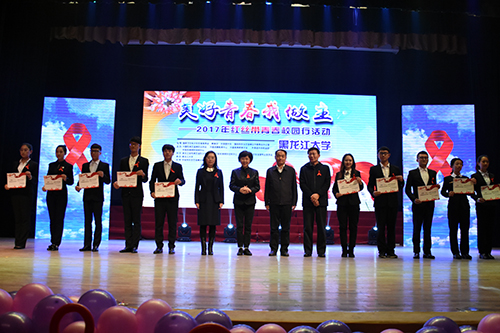 在活动中,我校学生表演了合唱《瞳孔里的太阳》,呼吁大家关注艾滋病,关爱艾滋病儿童;心理情景剧《用爱战胜爱》讲述了一名怀疑自己感染了艾滋病的同学的心理历程,宣传了艾滋病的传播途径及检测;《大梦想家》的手语操表演传递了温暖的力量;红丝带健康大使沈娜的一曲《我爱你,中国》更是让大学生们感受到了个人和祖国发展的密切关系,将现场气氛推向了高潮。同学们用精彩的文艺演出表达了对艾滋病防控的关注以及对生命的尊重。活动中还举行了黑龙江省高校“校园防艾宣传员”的聘任仪式,来自十所高校的10名学生成为了龙江高校群体防控艾滋的新生力量。