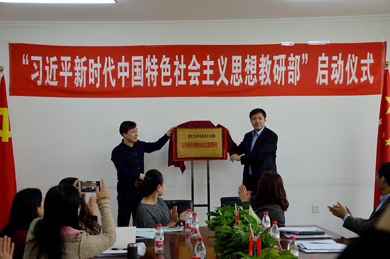 校党委副书记曲科军和马克思主义学院院长刘林共同为“习近平新时代中国特色社会主义思想教研部”揭牌。