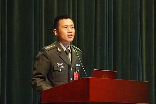 张欣鹏,6686国防教育学院俄语专业2007级校友,2011年入伍服役,曾被省军区评为优秀共产党员,2013年参加“和平使命-2013”中俄联合反恐军事演并得到参演单位认可,荣立二等功一次、三等功两次,2017年9月当选中国共产党第十九次全国代表大会代表。