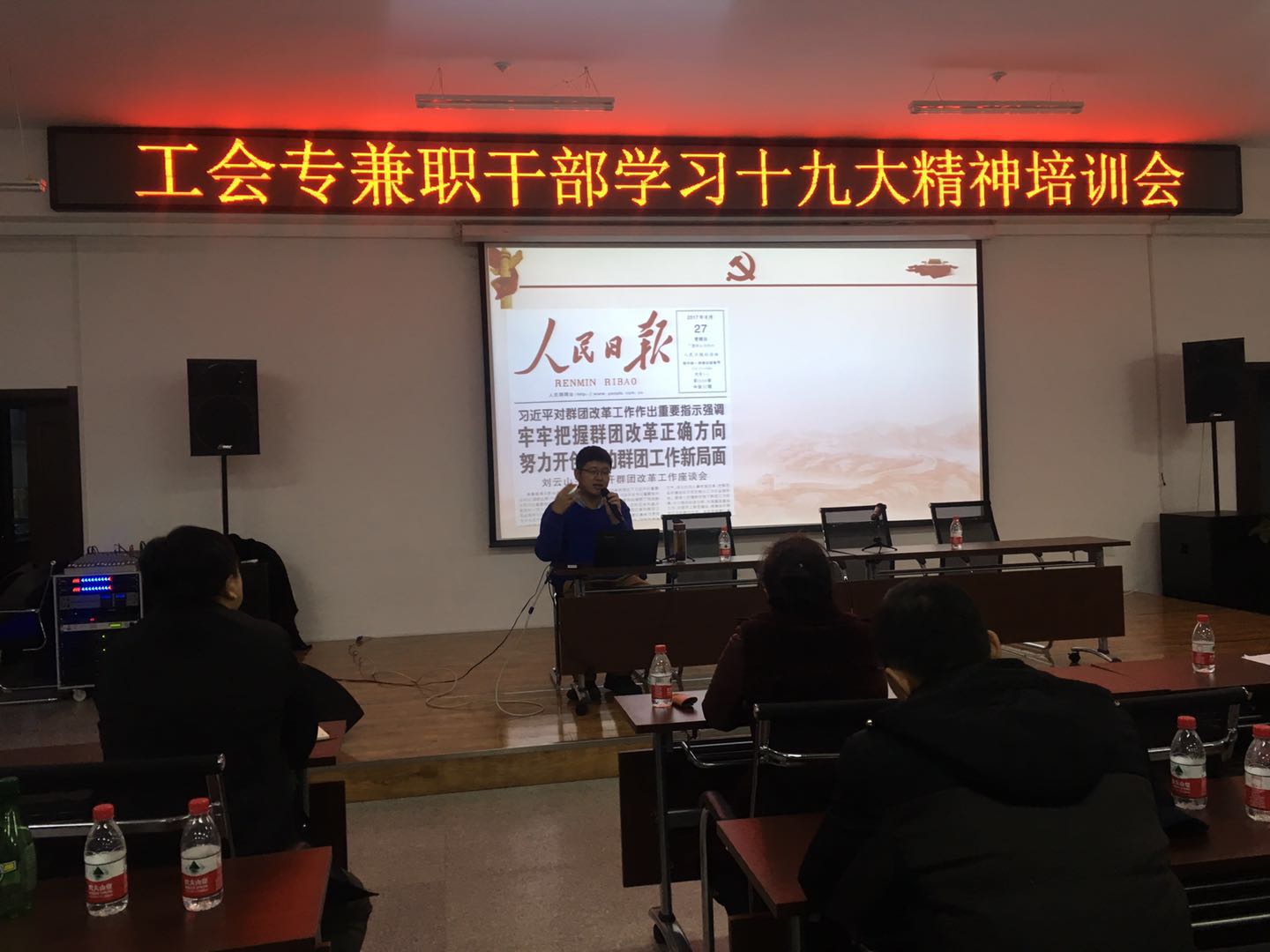 凝心聚力跟党走,不忘初心再出发。11月22日下午,我校在教职工之家举办工会专兼职干部学习十九大精神专题培训会。《工人日报》黑龙江记者站站长张世光作了题为《十九大,工会人可以这样看》的专题辅导讲座。校工会主席陈德明,各部门工会主席、副主席、部分工会委员及机关工会专职干部参加了培训。培训会由校工会副主席王军林主持。
