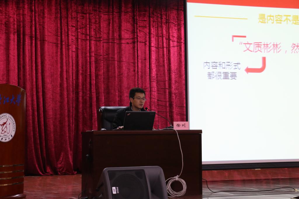 徐川从“不忘初心,继续前进”出发,提出思政工作者应该明确使命恪尽职守,形成合力,支撑起青年成长的万里长空。他指出了目前思政工作存在的误区,认为思政工作法是方法不是事迹,是内容不是形式,是路径不是结论,思政工作者应该学习实实在在的东西,而不应是停留在学习事迹、形式等。