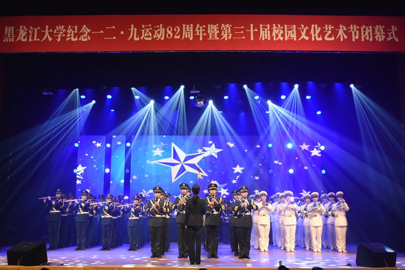 新时代、新梦想,青年学子砥砺前行。新征程、新目标,黑大青年厚积薄发。12月8日晚6时,我校在音乐厅隆重举行“时代新青年,梦想新征程”纪念一二·九运动82周年暨第三十届校园文化艺术节闭幕式。校领导刘德权、蒋晶洁、丁宏、荣盘祥、严明、陈文远、张颖春、于文秀、陈德明观看晚会并为获奖师生代表颁奖。相关职能部门负责人,各学院院长、书记、主管学生工作领导,全校专兼职团干部、青马工程黑大菁英大学生骨干培训班学员代表和学生代表共1000余人参加了晚会。