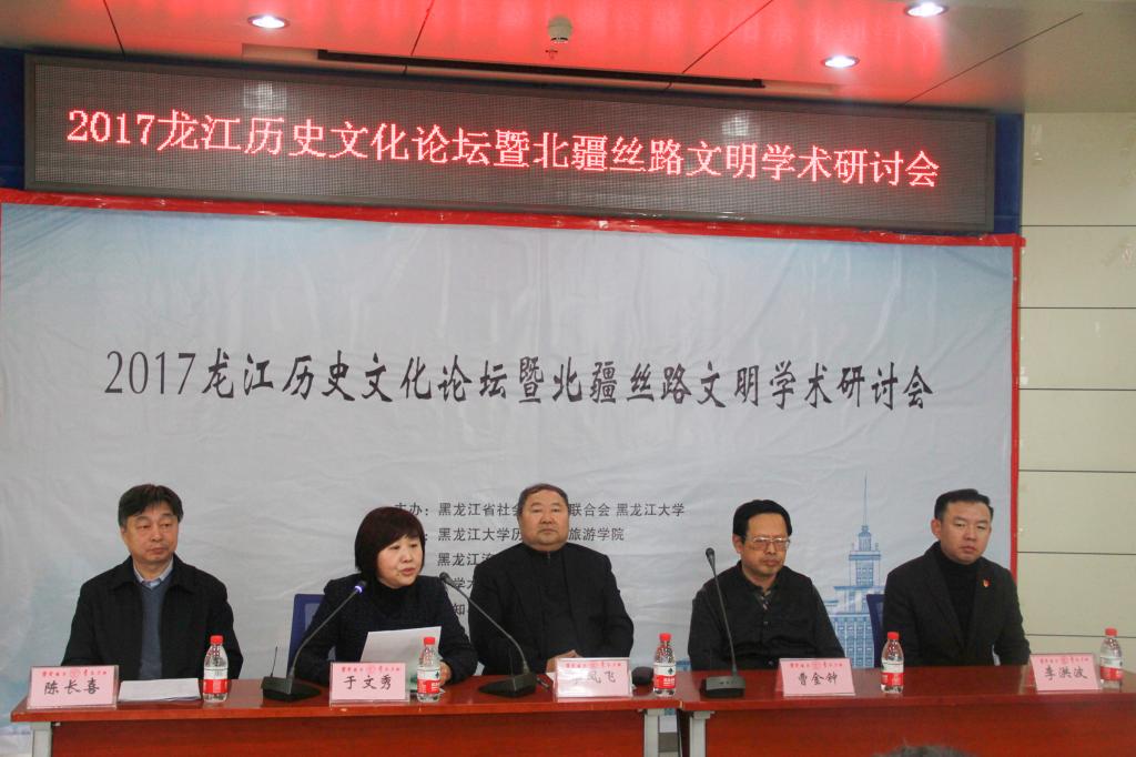 12月9日,“2017龙江历史文化论坛暨北疆丝路文明学术研讨会”在我校主楼A226会议室召开,于文秀副校长出席开幕式并致辞。于校长代表学校对会议的召开表示热烈的祝贺,并向出席本次会议的嘉宾及与会专家表示热烈的欢迎。于校长指出,在当前文化大发展大繁荣的新时代,如何既往开来,发掘传承优秀龙江文化,弘扬北疆丝路文明,已成为我省相关专家学者的现实使命,并表示,要通过专家的广泛交流,为龙江历史文化发展和北疆丝路文明建设作出积极贡献。黑龙江省历史学会会长李凤飞、黑龙江省社科联社科信息中心主任曹金钟也分别致辞。