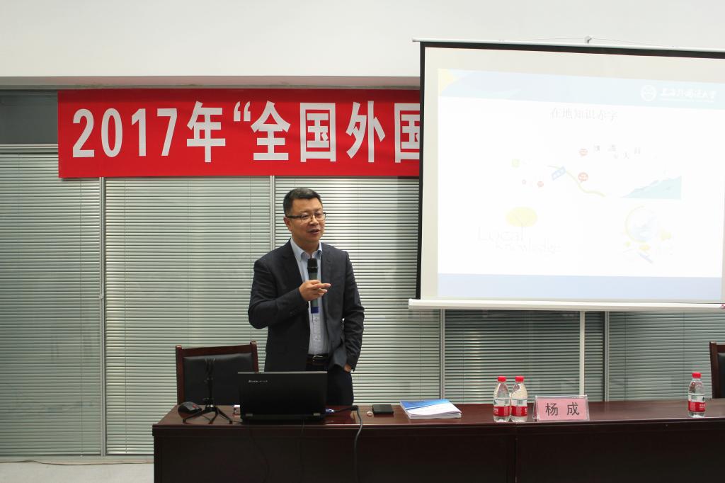 丁隆教授的学术报告题目为《外语与区域国别研究》。丁教授以中东政治研究为例,指出区域国别研究在当下的重要性和发展前景。同时强调,学习外语,要懂得学以致用。在学习外语的同时,要立足兴趣点和可发展的研究方向,深入拓展自身专业素养和国际知识体系。