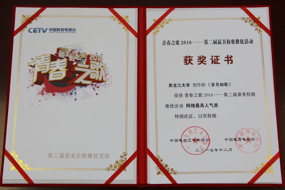 我校艺术学院合唱团在晚会中展演6686校歌《岁月如歌》,受到了导演组及兄弟高校的一致好评,也向全国观众展现了黑大学子的青春风采。