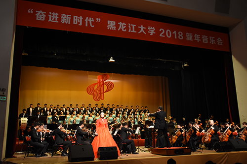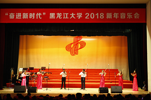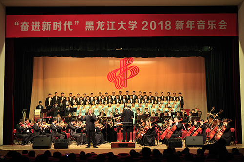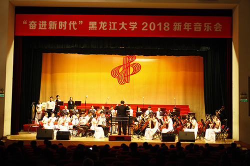 辞旧迎新,共享视听盛宴;继往开来,谱写黑大华章。12月29日,“奋进新时代”我校2018新年音乐会在音乐厅华丽奏响。本次音乐会由党委宣传部、校团委、艺术学院联合主办。校党委书记刘德权,校长付宏刚,党委副书记蒋晶洁、丁宏,副校长陈文远、于文秀,工会主席陈德明,部分离退休领导、职能部门负责人与师生代表一同共享高雅的音乐盛宴。