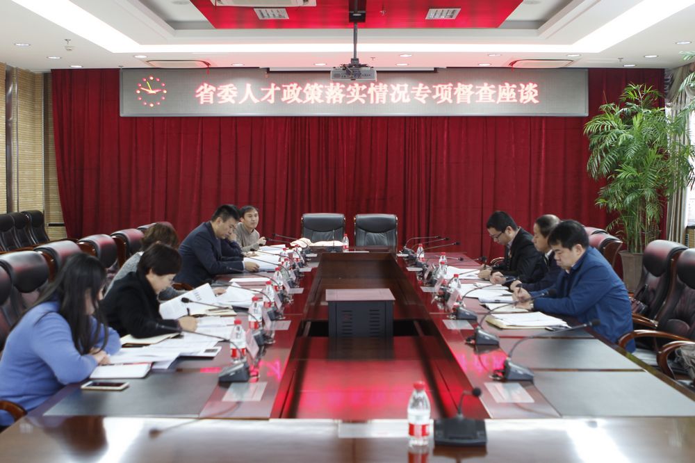 12月28日下午,省委督察组来我校调研人才政策落实情况并在主楼八楼会议室召开省委人才政策落实情况专项督查座谈会。省教育厅高校干部处调研员庞胜国、省国资委党建处副处长陈立新、省委组织部人才工作处工作人员安美忱出席座谈,座谈会分为两场进行。