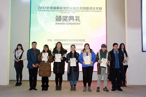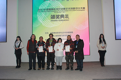 1月3日下午,由中国高校科学与艺术创意联盟、黑龙江省教育厅高等教育处主办,6686和哈尔滨冰雪大世界股份有限公司共同承办的2017年首届“高校冰灯冰雕艺术创新设计大赛”颁奖典礼在哈尔滨冰雪大世界“冰雪艺术宫”举行。中国高校科学与艺术创意联盟、省教育厅、哈尔滨冰雪大世界股份有限公司、国际冰雪雕协会、哈尔滨市画院、哈尔滨冰灯艺术展览中心、工大集团广告传媒有限公司等有关领导和专家,我校副校长严明,教务处、冰雪文化艺术研究中心以及各高校参赛师生代表共同出席了颁奖典礼。
