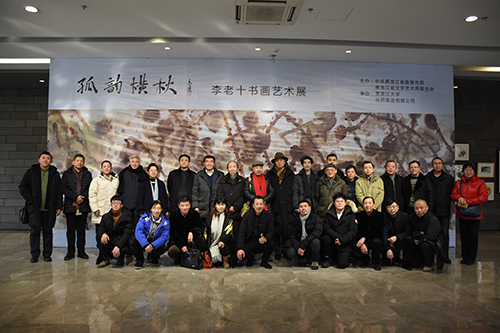 1月7日,“孤韵横秋”李老十书画艺术展在我校博物馆开幕。中国国家画院常务副院长卢禹舜,中国著名篆刻家、学者、中国艺术研究院书法院研究员石开,中央美术学院国画学院院长陈平,天津美术学院国画院院长李孝萱,中国国家画院一级美术师梅墨生,中国艺术研究院研究生院副院长许俊,北京理工大学设计学院教授徐洪文、北京大学文化与艺术人才研究室主任刘墨,中国国家画院高卉民工作室导师高卉民等艺术家,省文联主席傅道彬、省文联副主席兼省书法家协会主席张戈、哈药集团美术馆馆长陈玉华、李老十夫人刘宝华及其子李昂,我校党委书记刘德权、党委副书记蒋晶洁等领导和嘉宾共同出席了本次艺术展开幕式。开幕式由我校博物馆执行馆长臧伟强主持。
