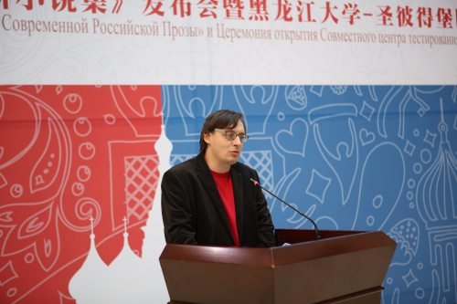 圣彼得堡国立大学校长克罗帕切夫在致辞中高度评价了我校俄语学科取得的成就,并对圣彼得堡国立大学与我校未来联合测试充满了期待。他表示,《当代俄罗斯小说集》的发布首先要感谢两国政治层面上的支持,其次要感谢我校优秀的翻译人才队伍,才得以让这些俄罗斯当代优秀作品被翻译并印制成为中文。他希望大家通过阅读《当代俄罗斯小说集》能够更加了解俄罗斯与俄罗斯的文化。