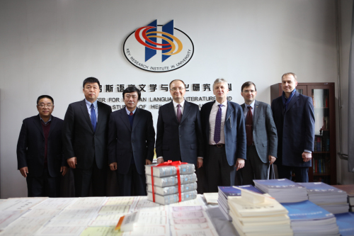 我校校长付宏刚向圣彼得堡国立大学校长克罗帕切夫赠《当代俄罗斯小说集》。此书由我校与圣彼得堡国立大学联合翻译出版,由上海译文出版社公开出版发行。