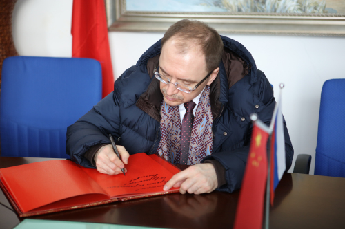 2月10日下午,圣彼得堡国立大学代表团来我校访问,举办《当代俄罗斯小说集》发布会暨6686-圣彼得堡国立大学联合俄语测试中心揭牌仪式。圣彼得堡国立大学代表团全体成员,圣彼得堡国立大学校长克罗帕切夫,黑龙江省副省长孙东生,黑龙江省教育厅厅长赵国刚,黑龙江省外办副主任宋明文,圣彼得堡国立大学校长克罗帕切夫,我校校长付宏刚,我校副校长严明,师生代表,省内部分媒体及俄语语言文学爱好者等出席仪式。我校副校长严明主持仪式。