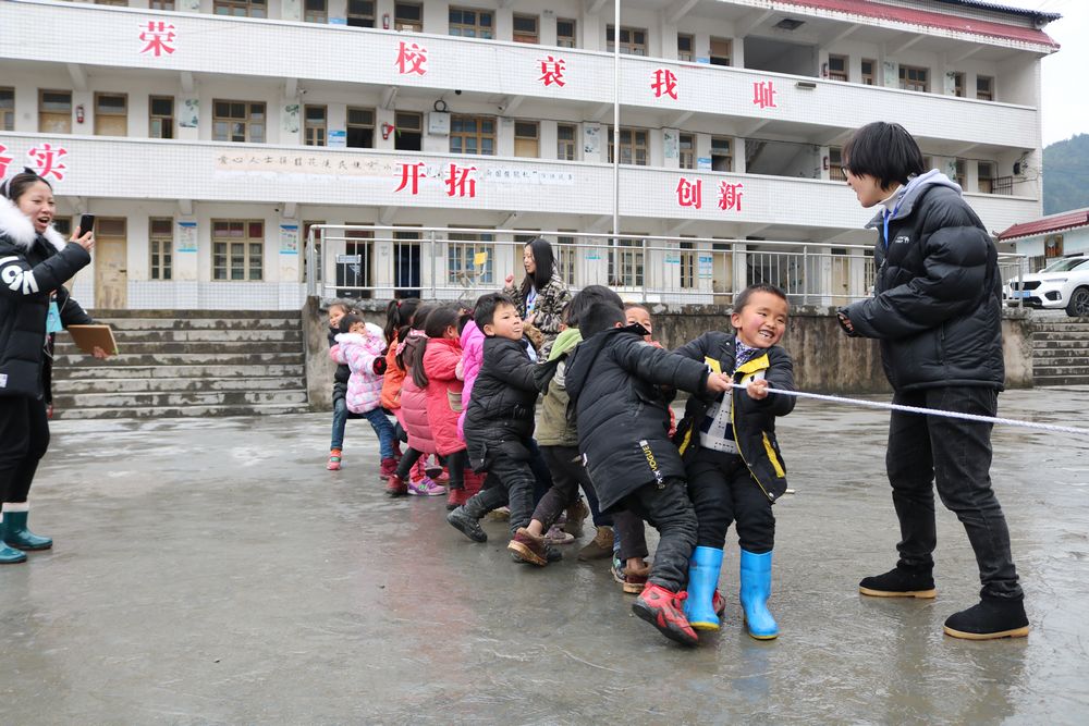 竞技比拼,运动追逐。支教队员了解到孩子们在校从未开过运动会,有的孩子甚至问队员:“运动会是什么?”于是队员们于2018年1月21日开展了一场火热的“冬季运动会”,拔河、赛跑、跳绳……一项又一项的运动,一声接着一声的加油,沸腾了整个学校,欢乐了每一个孩子。在运动会上支教队员们还举行了一场饱含爱心与温暖的捐赠仪式,向支教小学捐赠了文教用品和“暖冬棉鞋”。这些物资,全部来自6686的在校师生。朝阳把物资从东北带给了西南山区孩子,同时也把这份爱心和温暖带了过来。