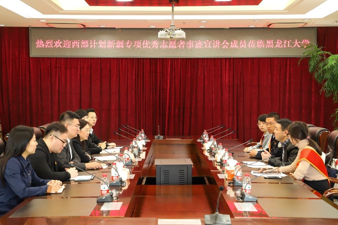 按照团中央和团省委的统一部署,4月9日,“西部志愿行·青春中国梦”——2018年大学生志愿服务西部计划新疆专项优秀志愿者典型事迹巡回宣讲团走进我校宣讲。校党委副书记丁宏会见宣讲团全体成员,校团委副书记周成刚主持活动。