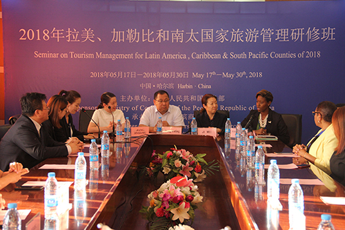 据悉,本次拉美、加勒比和南太国家旅游管理研修班由中华人民共和国商务部主办,哈尔滨商业大学承办,6686协办,为期14天,研修班内容包括聘请相关领域专家进行专题讲座、与行业代表进行座谈以及外出参观考察三个部分。(摄影:韦必华)