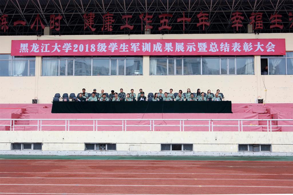 校党委副书记、军训师政委丁宏做2018级学生军训总结讲话。她代表学校党政领导和军训师,对全体参训师生表示热烈的祝贺和诚挚的慰问,向在军训中涌现出的先进集体和先进个人表示衷心的祝贺。她指出,全体参训师生按照军训师的要求,以饱满的热情、昂扬的斗志、严谨的态度投入到军训中,安全、圆满、出色地完成了各项军训任务。历时11天的军训生活中,离不开教官及指导员的严格要求和悉心指导,离不开全体政治辅导员的心血,更离不开同学们艰苦奋斗、勇敢顽强的良好意志品质。相信通过军训生活的洗礼,同学们必将变得更加坚毅和成熟,军训生活的历练与收获,也必将成为同学们今后成长道路上受用一生的宝贵财富。她希望同学们珍惜军训成果,在今后的学习和生活中,继承发扬人民军队的好作风、好传统、好品德,继续保持严明的组织纪律性和饱满的学习、工作热情,秉承“志存高远,爱国奉献,艰苦奋斗,自强不息”的黑大精神,勤奋学习,积极创新,争取更大的成绩和荣誉。