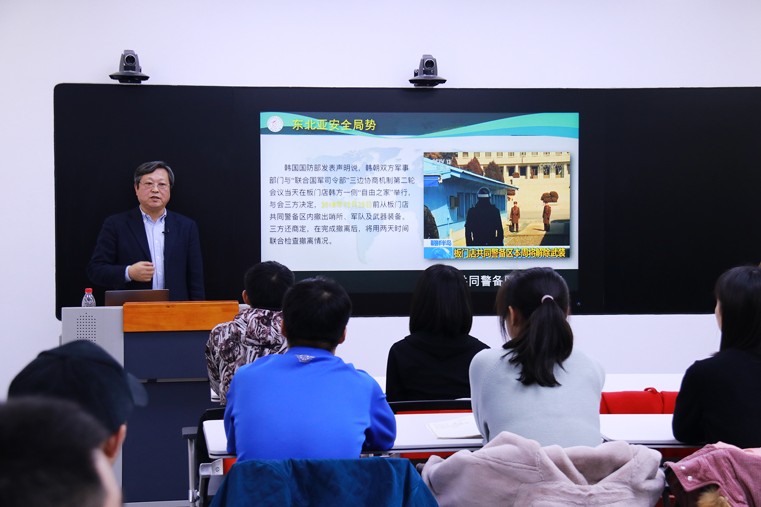 尚晓军教授层次分明地对东北亚局势进行了解读,同学们也对东北亚安全局势有了更进一步地认识和更深入地理解。整场讲座中大家听的非常认真,反响热烈。