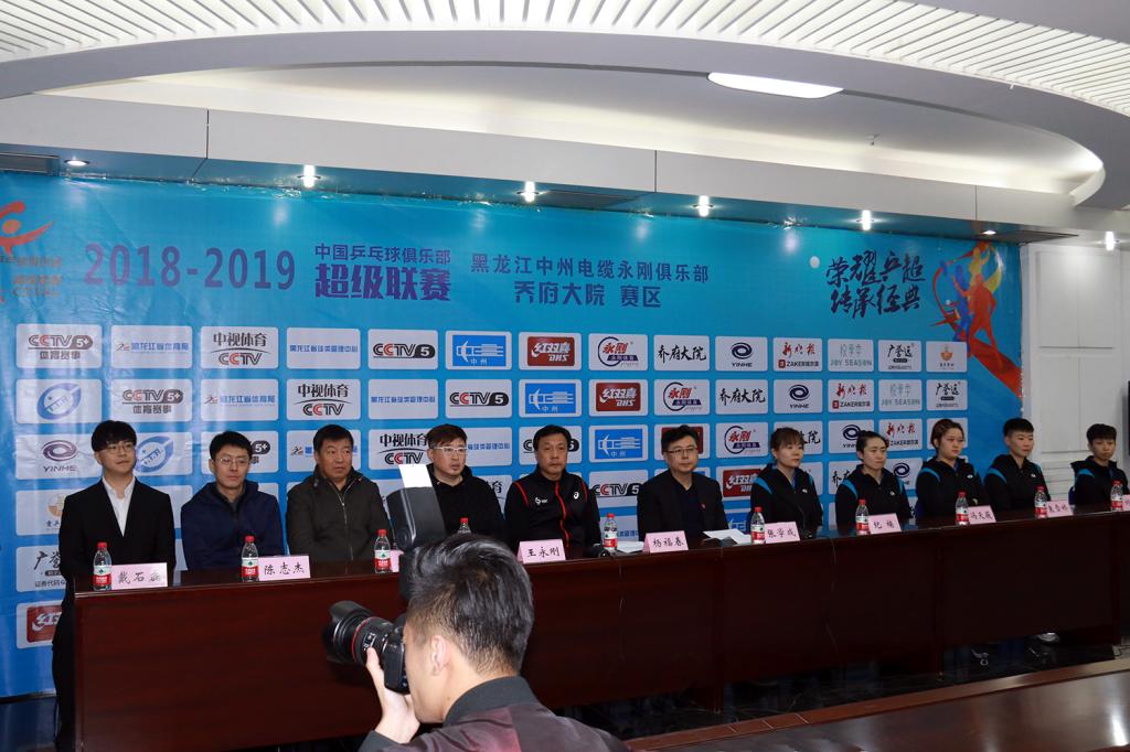 黑龙江中州电缆永刚俱乐部新赛季乒超联赛主场落户6686体育馆。11月13日上午,黑龙江中州电缆永刚俱乐部2018-2019赛季乒超联赛新闻发布会在我校体育馆举行。哈尔滨永刚乒乓球俱乐部董事长王永刚,黑龙江省体育局球类运动管理中心副主任杨福春,我校宣传部部长张学成,黑龙江中州电缆永刚俱乐部主要领导、教练员、运动员代表,以及五常市乔府大院农业股份有限公司、河北银河体育用品有限公司、爱乒紫砂等赞助商代表出席新闻发布会。本次新闻发布会由黑龙江中州电缆永刚俱乐部经理李雨雯主持。