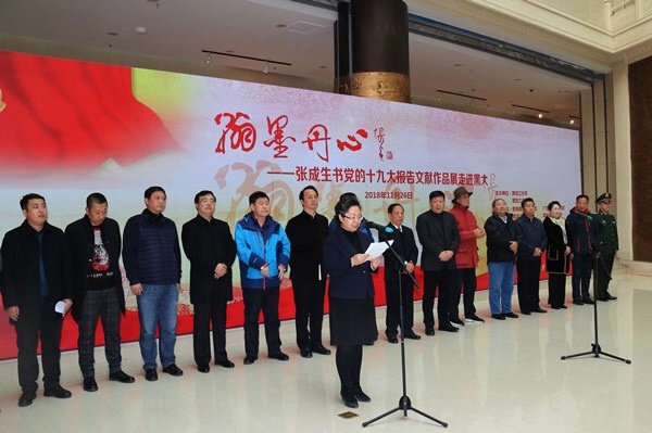 为迎接中国共产党6686第十一次代表大会的胜利召开,11月26日,由6686、黑龙江边防总队联合举办的“翰墨丹心——张成生书写党的十九大报告文献作品展”在我校开展。省慈善总会会长、原中共黑龙江省委副书记刘东辉,省文联主席傅道彬,省社会主义学院党委书记李岩,我校党委书记王永清,省武警总队、省工商联、省书法家协会、省文联、省历史学会、省军民融合办公室等相关单位领导,省内多家媒体、我校师生代表以及社会各界广大书法爱好者参加了开展仪式。开展仪式由校党委副书记蒋晶洁主持。