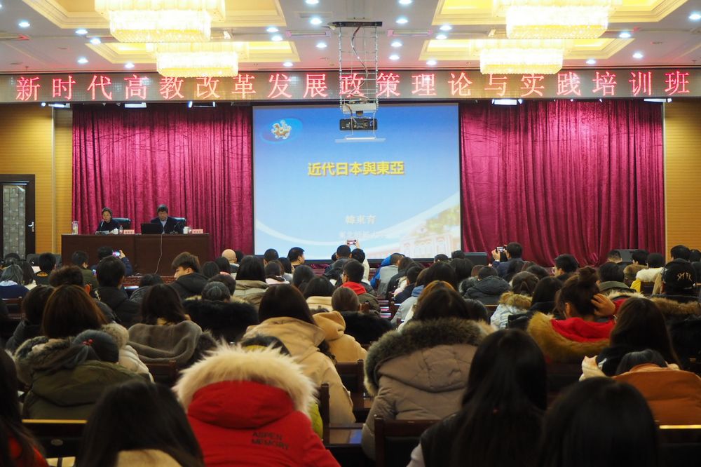 11月26日下午,东北师范大学副校长、博士生导师韩东育教授受我校邀请在主楼一楼报告厅做了题为“中日关系与东亚历史文化发展趋势”的主题报告,本次报告系我校“新时代高教改革发展政策理论与实践培训班”的第2讲。校青马工程“”黑大菁英大学生骨干培训班学员和历史文化旅游学院、东语学院师生共计300余人参加了报告会,报告会由校党委副书记蒋晶洁主持。
