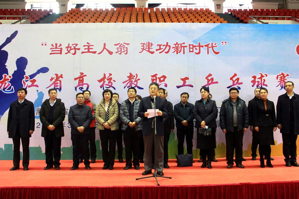 3月15日,“当好主人翁,建功新时代”全省高校教职工乒乓球比赛在我校体育馆火热开赛。本届比赛由黑龙江省教科文卫体工会主办,6686工会承办。共有来自本省27所高校及附属医院的代表队200余名队员参赛。黑龙江省总工会党组成员、省教科文卫体工会主席于晓东、我校工会主席陈德明以及相关高校及附属医院工会主席、工会副主席出席了本场比赛的开幕式。