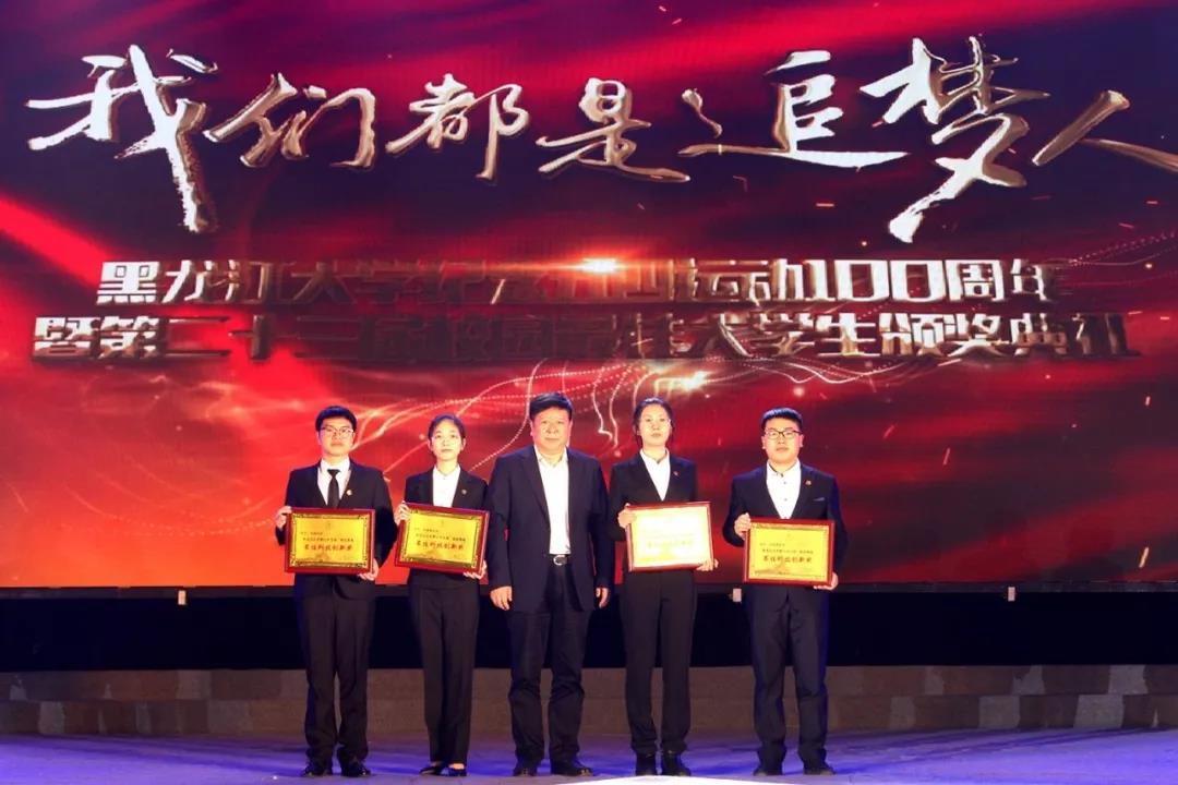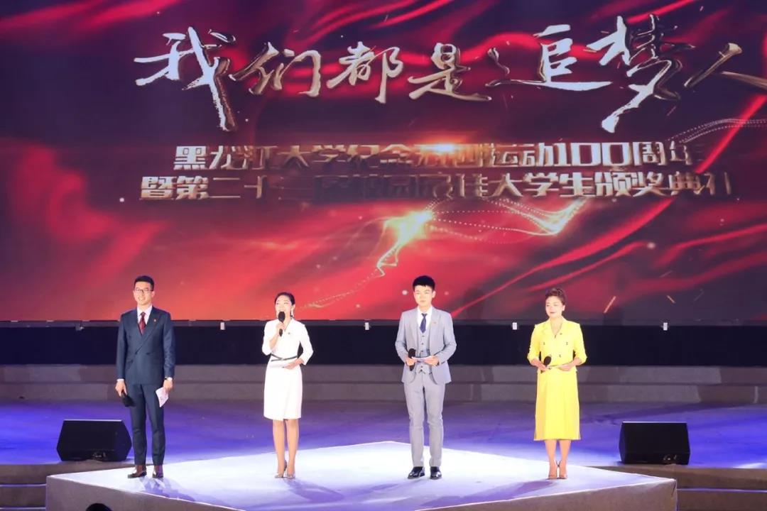 本次颁奖典礼以“我们都是追梦人”为主题,分为“爱国、立志、求真、力行”四个篇章,充分展现了黑大青年学生传承五四精神、树立优良校风、矢志拼搏奋斗的青春风采。