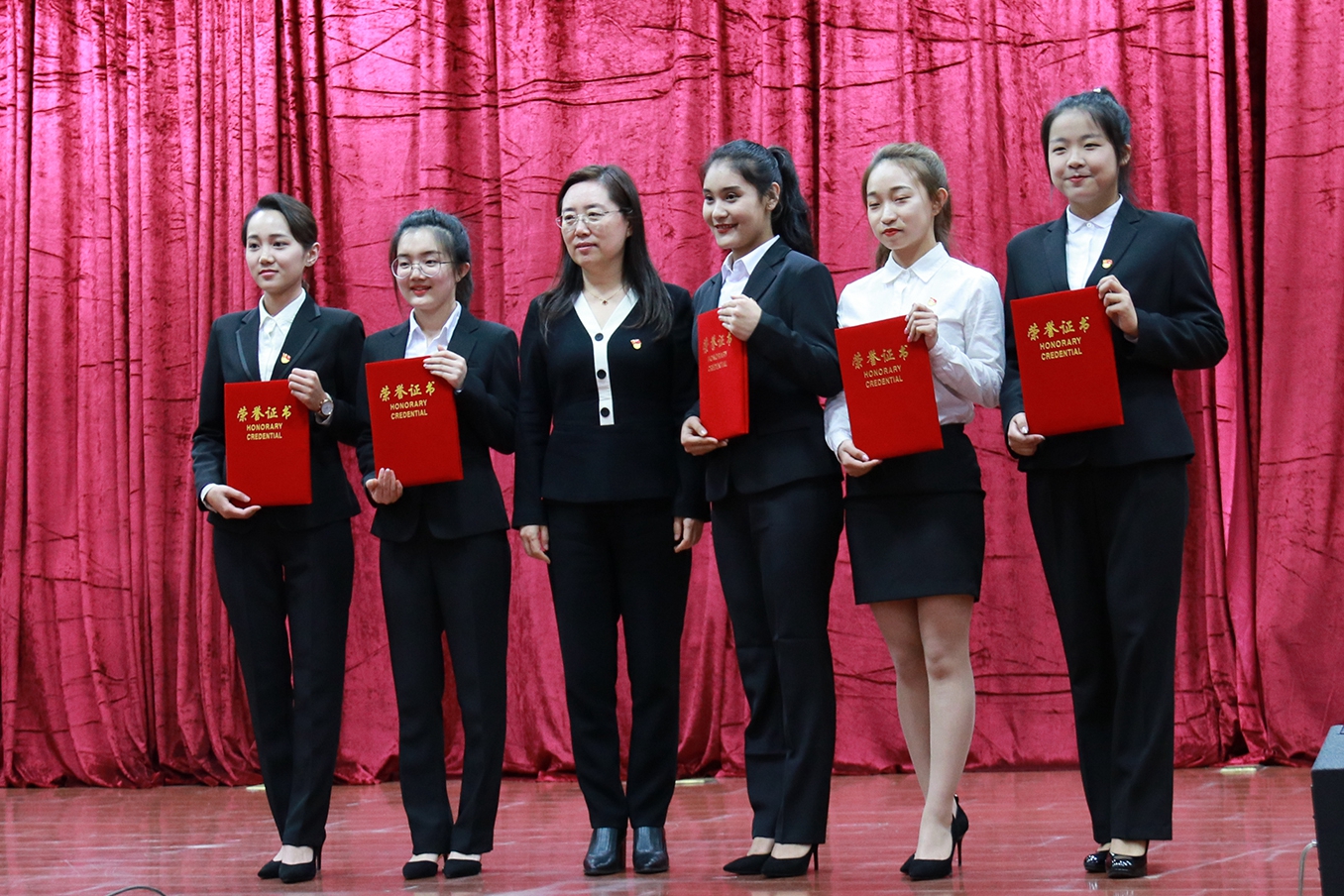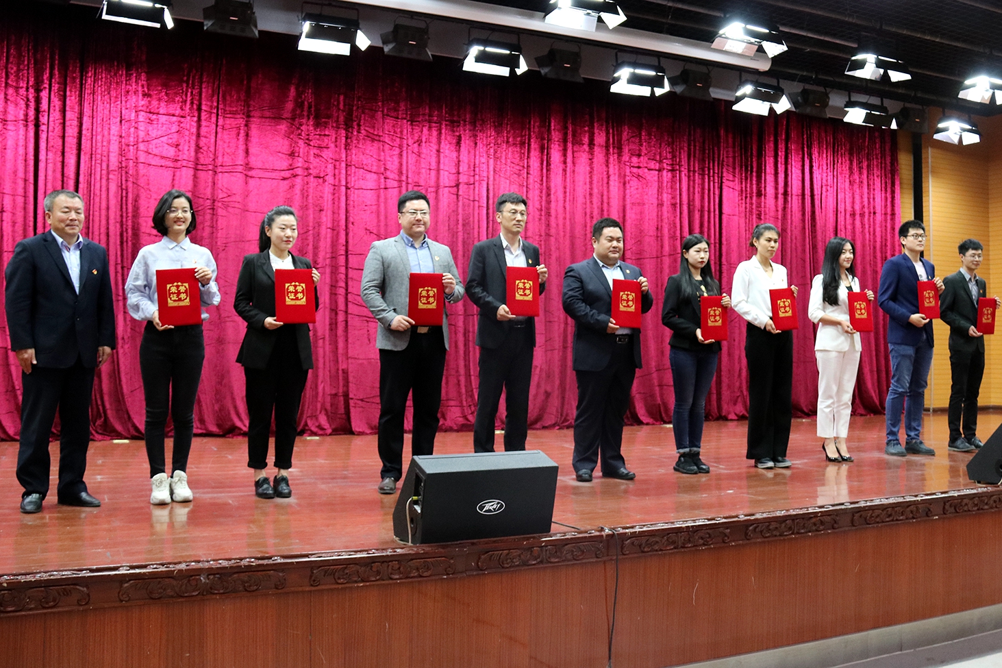 比赛中,来自我校十个学院的参赛选手围绕“我与共和国共奋进”这一主题,从个人经历、亲身体会与国家建设发展实际,结合幻灯片、短视频等多种演讲形式,与现场师生分享了对党的十九大精神的认识、对习近平新时代中国特色社会主义思想的认识以及对当代青年与祖国共奋进,建功立业新时代的思考与认识。情真意切的演讲内容,昂扬向上的精神旋律,讲述了当代青年身上的责任担当与青春梦想,进一步展现了我校青年学子扎实的理论水平、坚定的党性修养、胸怀的远大理想。经过一番激烈的角逐,经济与工商管理学院崔向程、东语学院刘双荣获我校第三届“学生党员讲党课大赛”一等奖,其他八名选手分获二、三等奖,我校俄语学院辅导员王昱蘅等10位辅导员获“优秀指导教师”奖,与会领导为获奖选手及优秀指导教师颁奖并合影留念。
