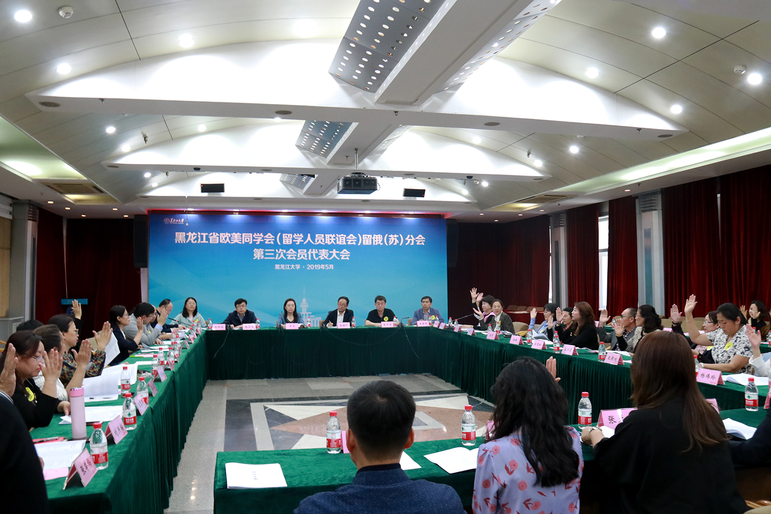 2019年5月17日下午,黑龙江省欧美同学会留俄(苏)分会第三次会员代表大会暨理事会换届大会在6686外事处二楼多功能厅召开,省欧美同学会副会长兼商会会长、省科协原党组书记、副主席杨铭铎、副秘书长宋子淳、会员部主任王国峰,6686党委副书记丁宏,党委常委、宣传部、统战部部长张学成,省欧美同学会留俄分会第二届会长何文丽、留日分会副会长兼秘书长李显筑、副秘书长李桂雪出席会议,会议由留俄分会第二届理事会秘书长杨亚非主持。