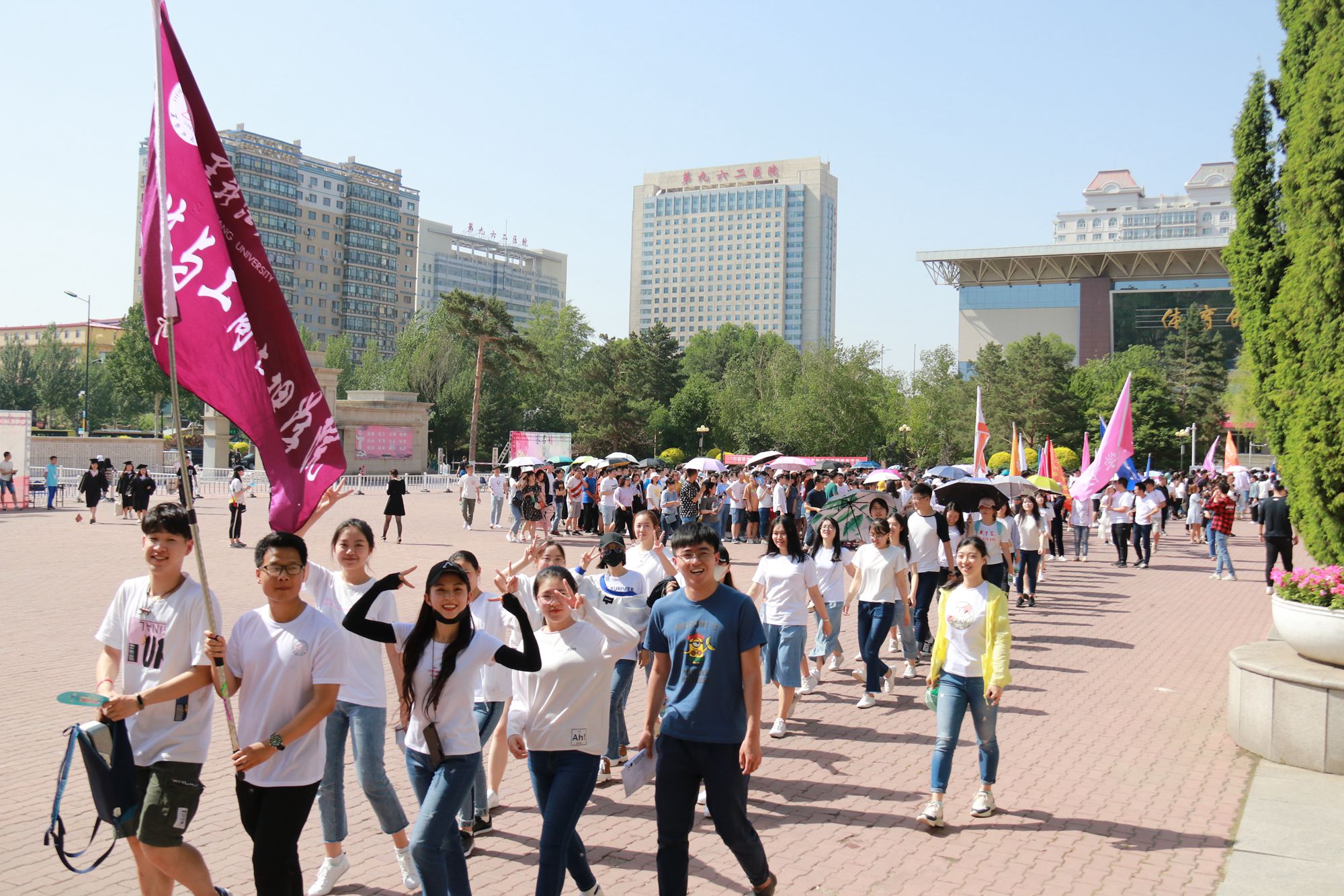 为进一步加强对毕业生的思想教育和价值引领,充分做好2019届毕业生离校前教育管理工作,着力营造文明、有序、感恩、难忘的毕业离校氛围,按照《66862019年毕业生离校“十四个一”主题教育方案》要求,结合我校“毕业生远航计划”教育内容,5月24日下午,我校开展“行健黑大 筑梦远航”2019年毕业季校园徒步活动。校党委副书记丁宏,党委宣传部、党委学工部、团委、安全保障部、教务处、招生就业处、体育教学研究部等相关职能部门负责人,各学院主管学生工作领导、毕业年级辅导员、各学院2019届本科、研究生毕业生代表共1000余人参加活动,中国建设银行哈尔滨香坊支行行长刘岩应邀出席活动,党委学工部部长、学生处处长李石主持活动。
