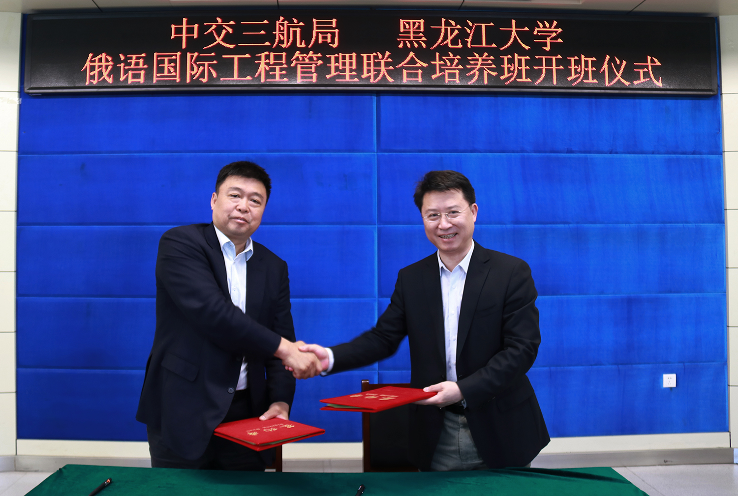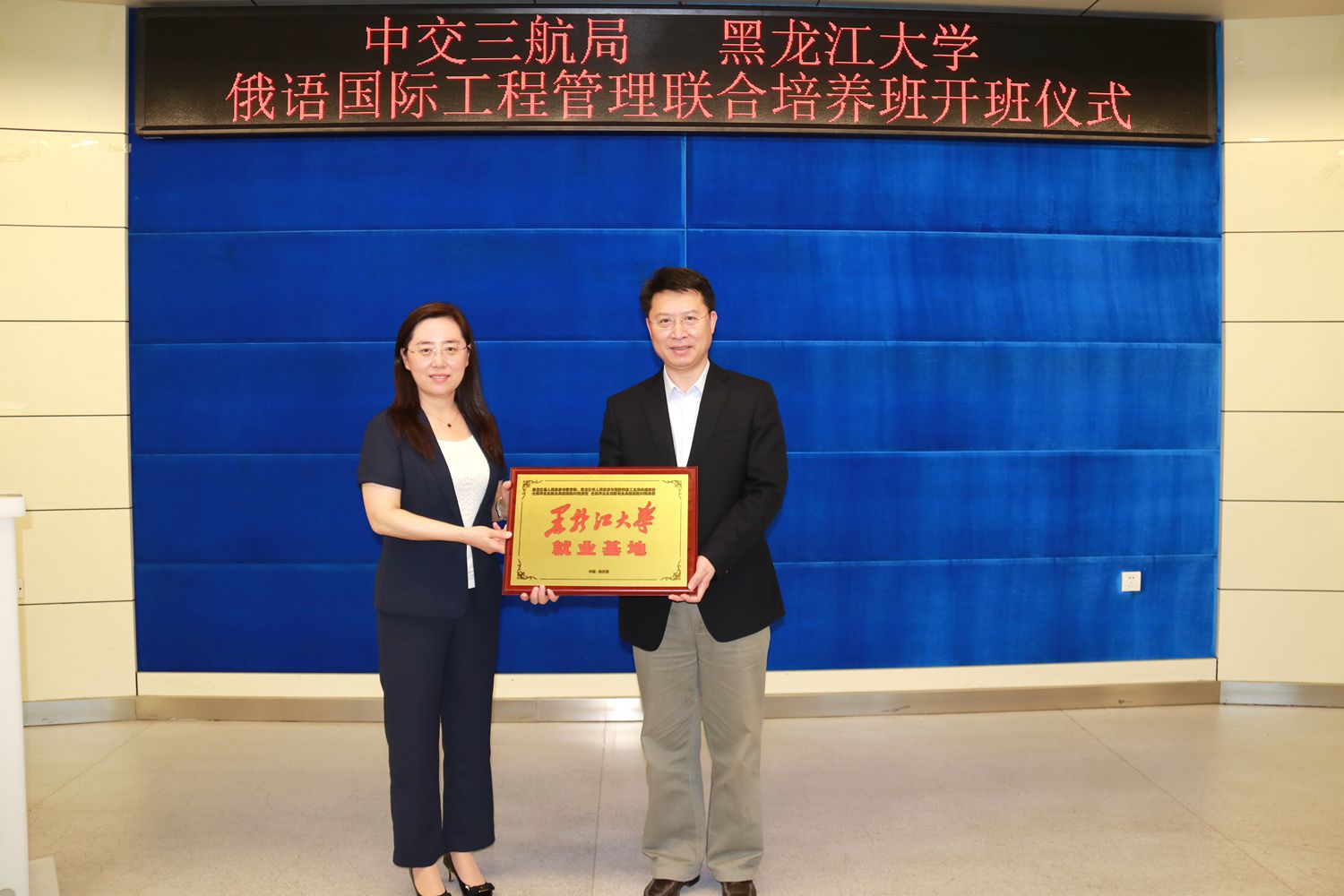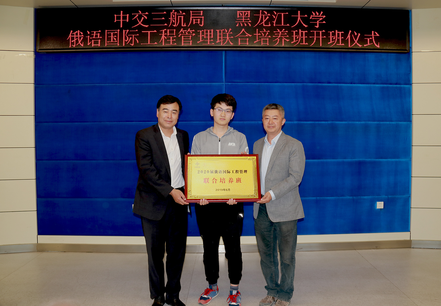 期间,校党委副书记丁宏为中交三航局柏钧部长授予6686就业基地铜牌。副校长严明与中交三航局柏钧部长签订6686俄语国际工程管理联合培养协议。教务处处长吴华洋和中交三航局海外事业部副总经理张林共同为2020届培养班授予班牌。