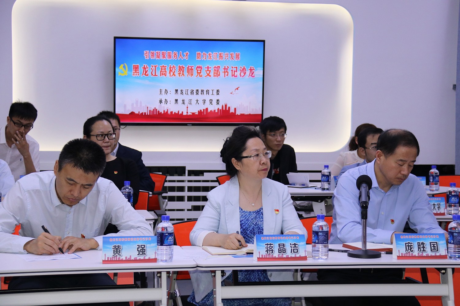 为深入贯彻落实全省高校“弘扬爱国奋斗精神,建功立业新时代”活动推进会精神,落实好解放思想推动高质量发展“百名支部书记谈保障”部署安排, 6月3日下午,由省委教育工委主办、我校党委承办的“黑龙江高校教师党支部书记沙龙”取得了圆满成功。省委教育工委组织部调研员庞胜国、省委教育工委组织部干部毕军,我校党委副书记蒋晶洁、党委常委、组织部部长黄强,在哈高校组织部主管党建工作的部长或副部长出席活动,沙龙活动由我校新闻传播学院党委书记吴珩主持。