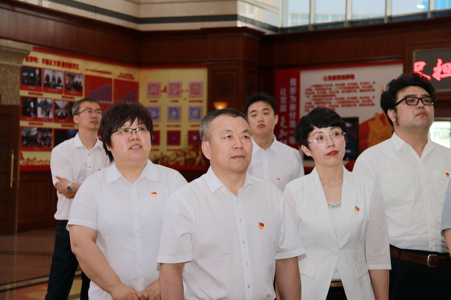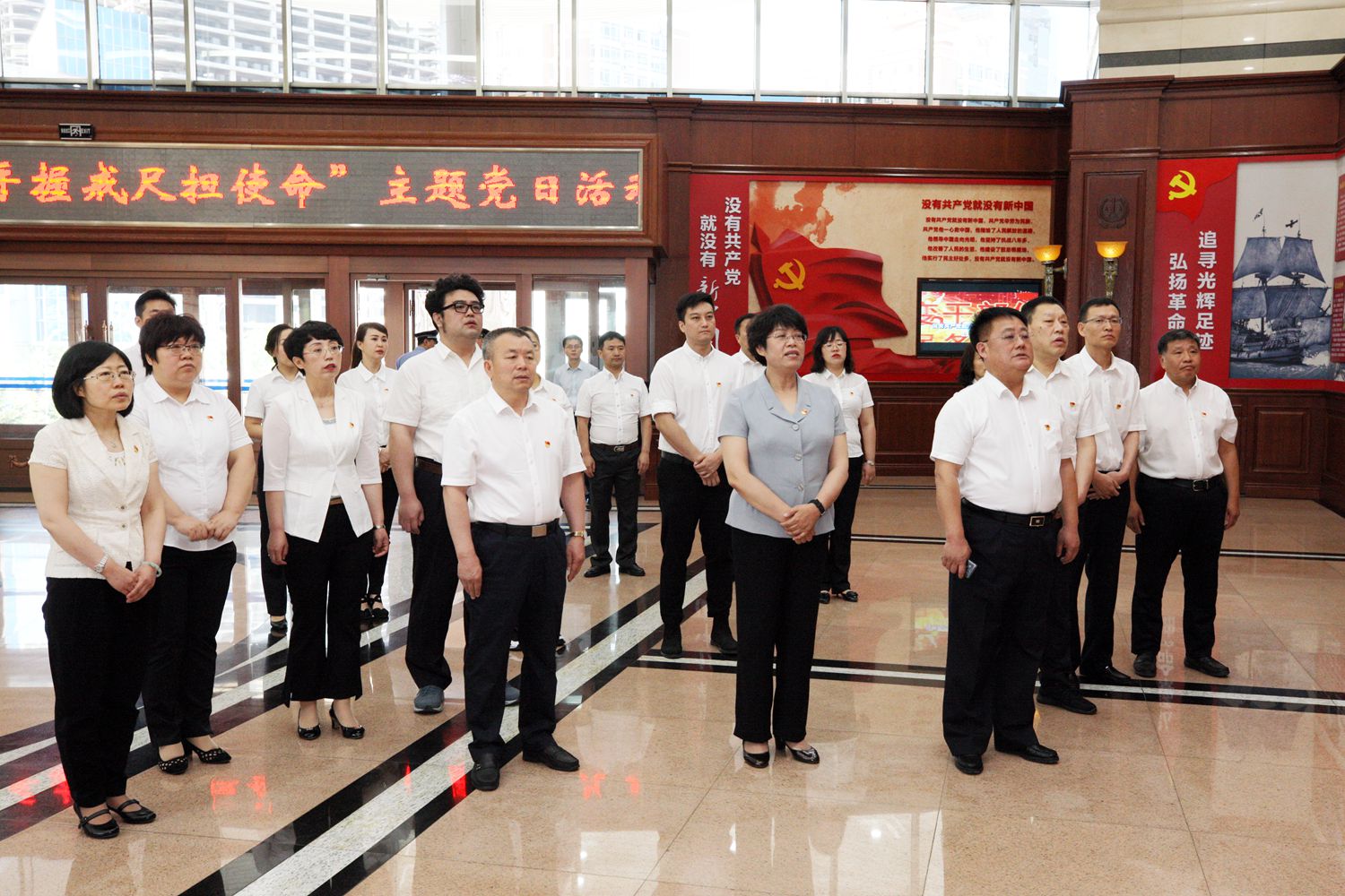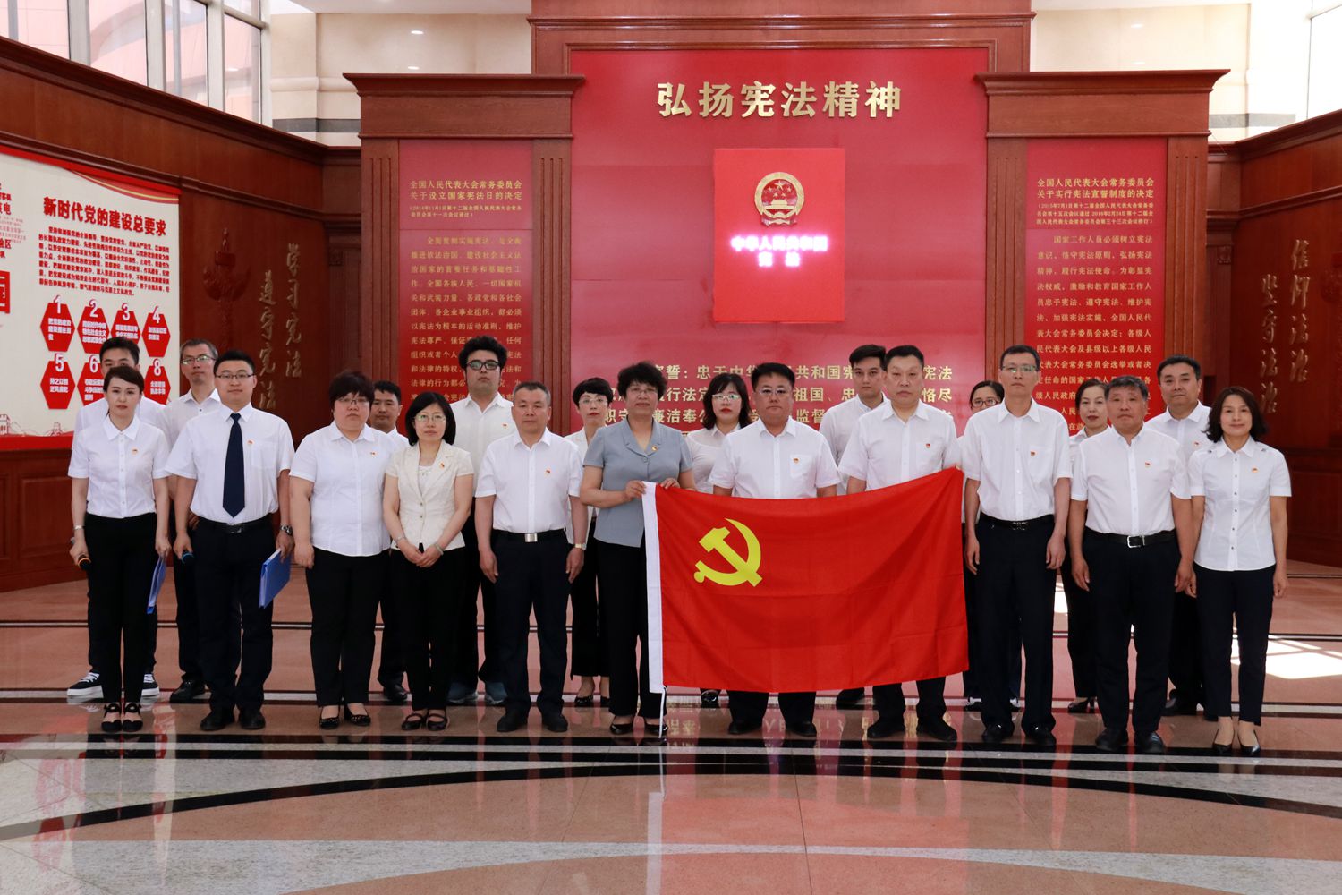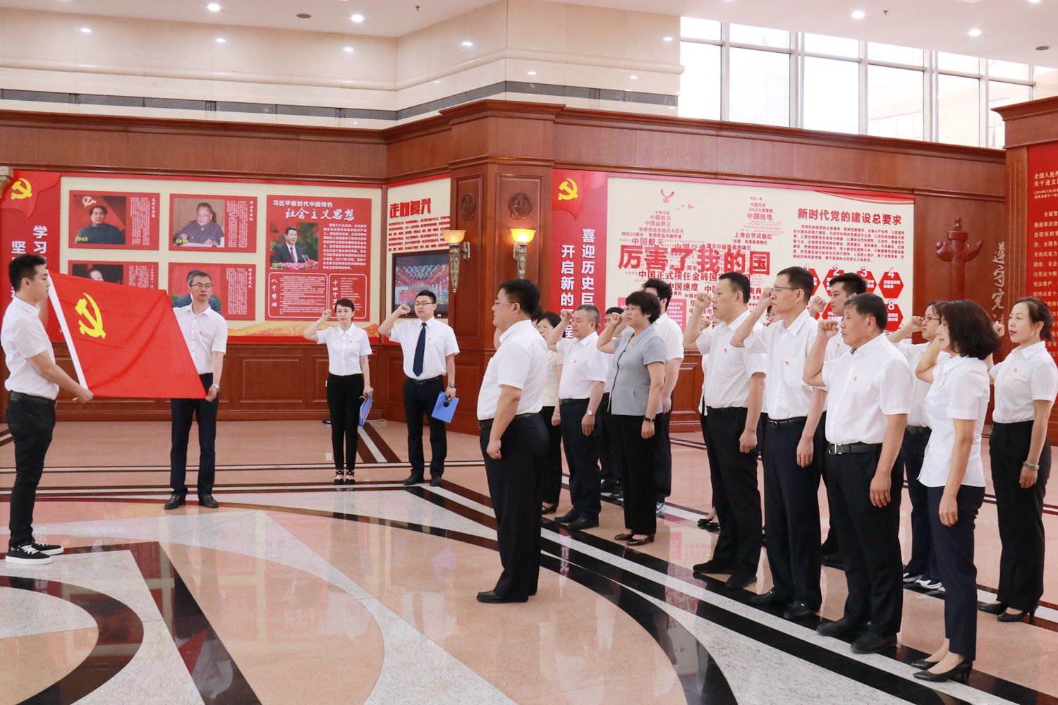 守初心,参观学习受教育。重温誓词后,同志们一起与党旗合影,用最红的旗帜、最美的合影,献礼建党98周年、新中国成立70周年!随后,在工作人员的引领讲解下,大家依次参观了党建主题展、高法院史馆和图书馆,学习感受全面依法治国成就和龙江法治建设的发展变化,进一步增强尊法学法用法守法意识,不断提升履职能力水平。