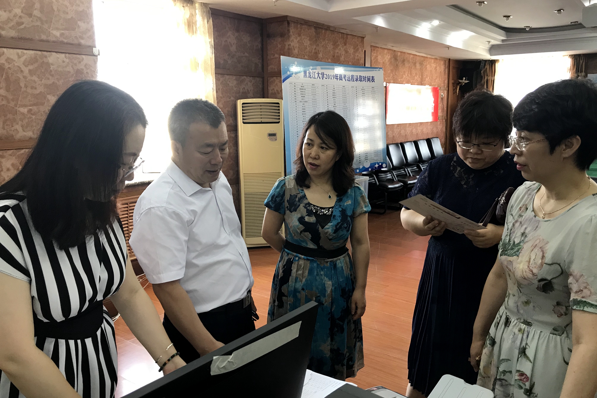 录取期间,我校党委副书记丁宏、纪委书记荣盘祥同志及纪委办、监察处有关人员到我校2019年高考远程录取现场进行监督检查。