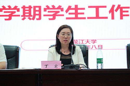 会议最后,校党委副书记丁宏讲话。她简要总结了我校上半年学生工作整体完成情况。 认为学工战线面对时间紧、任务重、年轻辅导员多等不利因素,依旧保质保量地完成了各项工作任务。针对当前工作面临的形势,丁宏副书记梳理了十类难点、重点和风险点,并对大家如何抵御和防范风险、高质量完成下半年工作提出了“五个树立”的具体要求。一要树立防范意识,认清形势。她要求大家必须要有敏感性,充分认识存在的风险,克服麻痹大意,守住工作底线。二要树立责任意识,把工作落实到位。在认清工作重点、难点和风险点之后,务必高度重视,逐级、逐层、逐项抓好工作落实。三要树立团队意识,打造团队文化。辅导员队伍要互帮互助,传承好的工作传统,共同提高,共同进步。四要树立学习意识,提高工作本领。要通过学习提升自己的专业化、职业化水平,努力成为学生工作的行家里手。五要树立创新意识,提升工作效果。她希望大家敢于尝试、善于思考,用好新媒体等方法,把工作做到学生心坎里。最后丁书记表示,学校党委将始终如一关注、关心学生工作队伍,希望大家对未来充满信心,脚踏实地,担当作为,为学校一流大学建设做出贡献。