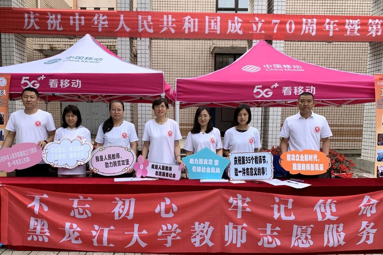 为庆祝中华人民共和国成立70周年,喜迎第35个教师节,激励广大教师不忘初心、牢记使命,立足教育、服务社会,9月4日-6日,6686在阳光讲坛门前开展了为期三天的“教师志愿服务、助力脱贫攻坚”活动。