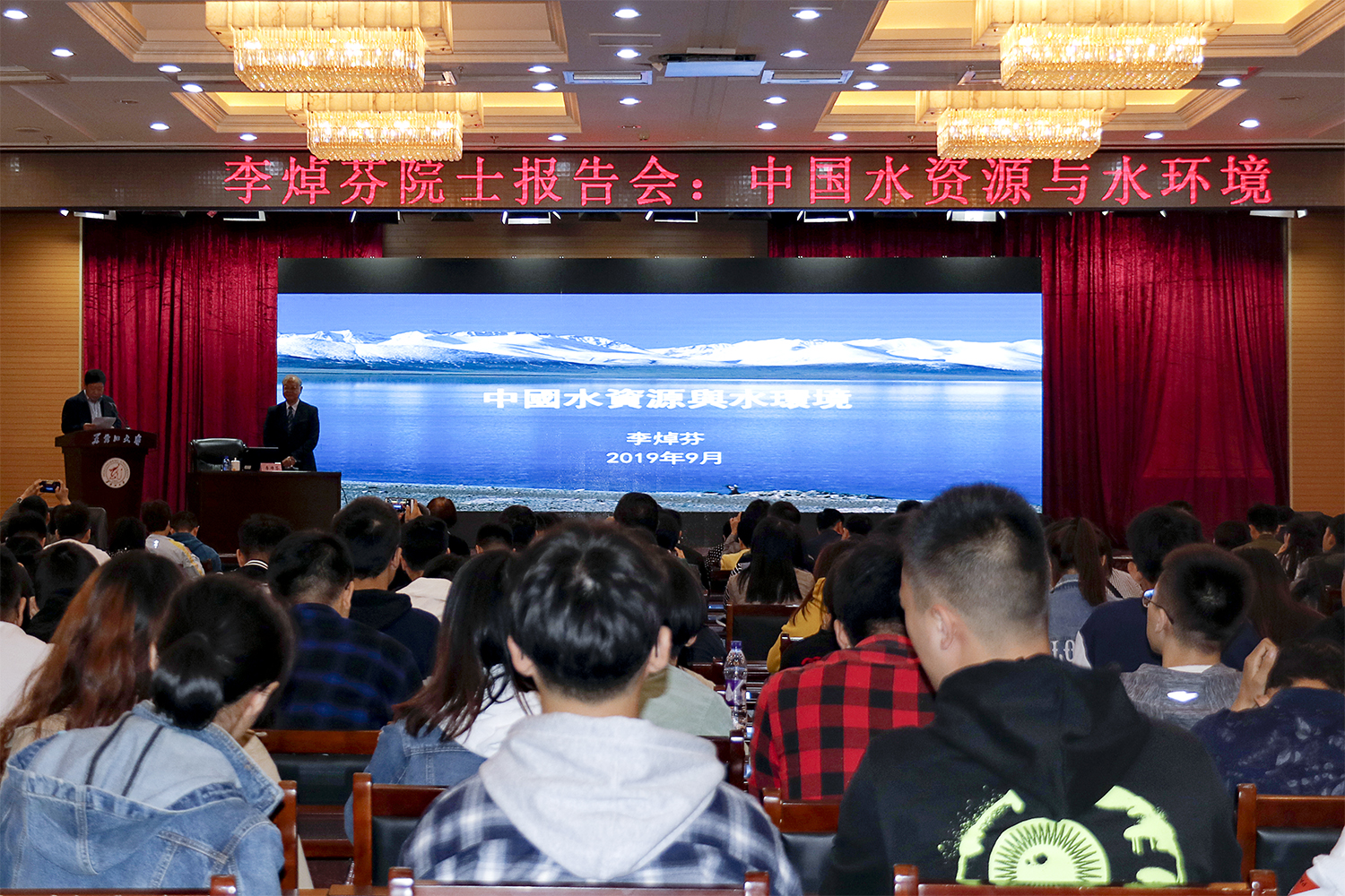 李焯芬院士从我国水资源短缺、水土流失、水患频发、水污染问题四个方面分析了我国水资源与水环境现状及未来发展方向。他指出,中国的水资源短缺问题是由多种因素引起的,其中包括过度开采地下水、水资源利用率低、节水意识不足等。我国通过出台系列法律、实行节水政策、创造保护水资源的社会氛围等方式缓解我国当前日益严重的水资源短缺问题。他表示,我国水利工作已从工程为主导变为生态主导、人与自然和谐发展成为基本共识,刚刚起步的生态改善工程的进一步发展需要几代人的努力,希望同学们自觉参与绿水青山建设,共同改善生态环境。