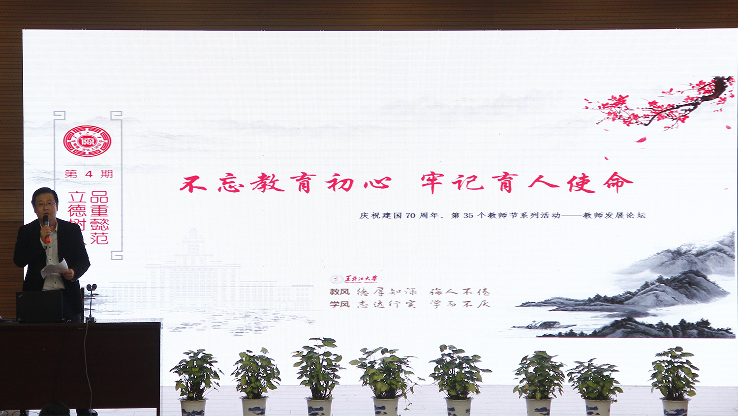 为庆祝中华人民共和国成立70周年和第35个教师节,9月25日下午,我校教师工作部、教务处、社会科学处和科学技术处共同举办了“不忘教育初心,牢记育人使命”教师发展论坛,本次活动也是我校“品重懿范,立德树人”师德▪文化大讲堂的第4期。论坛邀请了省优秀教师、校教书育人楷模、校师德先进个人金虎,校教书育人楷模赵晓锋和校模范教师任越与一线教师进行教学、科研、育人的工作经验交流,引导广大教师不忘初心,潜心履行教书育人的使命,营造学习先进,争当先进的浓郁氛围。