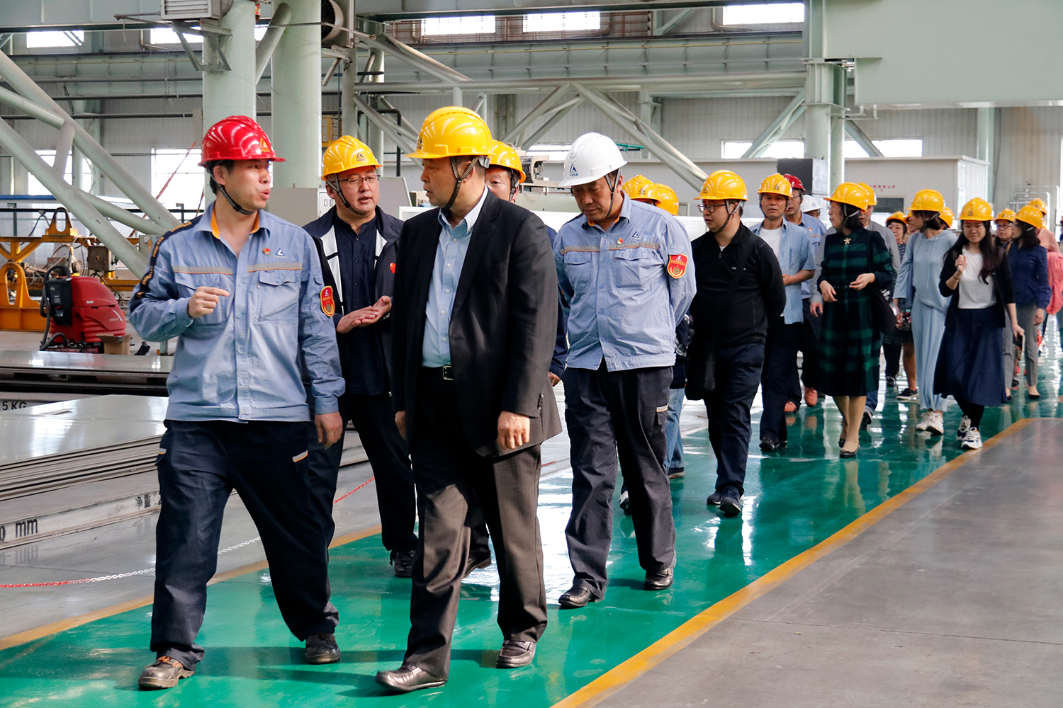 东轻公司党委副书记、总经理王学书全程陪同并介绍了公司的发展历史和发展进程。参观团一行首先参观了中国铝加工展览馆。据介绍,该公司是中国第一个镁铝合金加工企业,是国家为了增强国防力量,建立自己的航空工业而建立的铝合金加工企业,是由毛泽东、刘少奇、朱德、周恩来亲自阅定筹建的国家 “一五”期间的重点工程。国产第一架飞机、第一艘核潜艇和“两弹一星”等重点项目所需的铝镁合金加工材料全部由此提供,为中国铝加工业、国防工业、航空航天事业起步与发展以及国民经济建设作出了突出贡献,被盛誉为“祖国的银色支柱”、“中国铝镁加工业的摇篮”,被国务院发展研究中心认定为“中国最大的铝镁合金加工基地”。