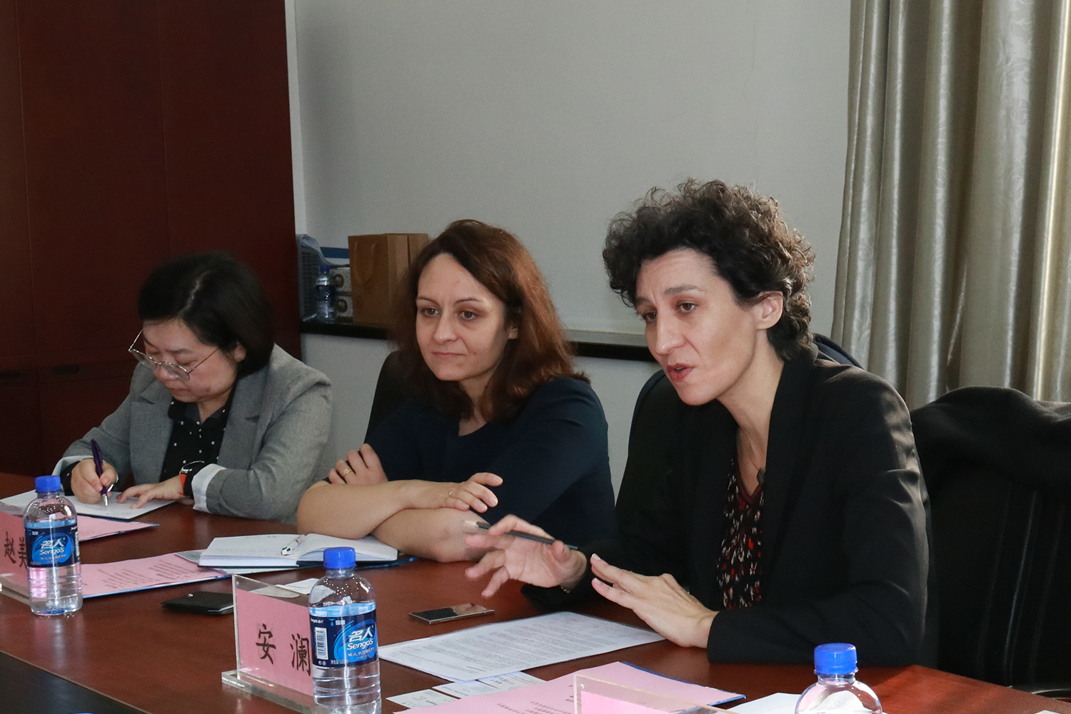 会谈结束后,安澜总领事来到中法学院的课堂与同学们进行了互动交流。(摄影:齐浩泽)