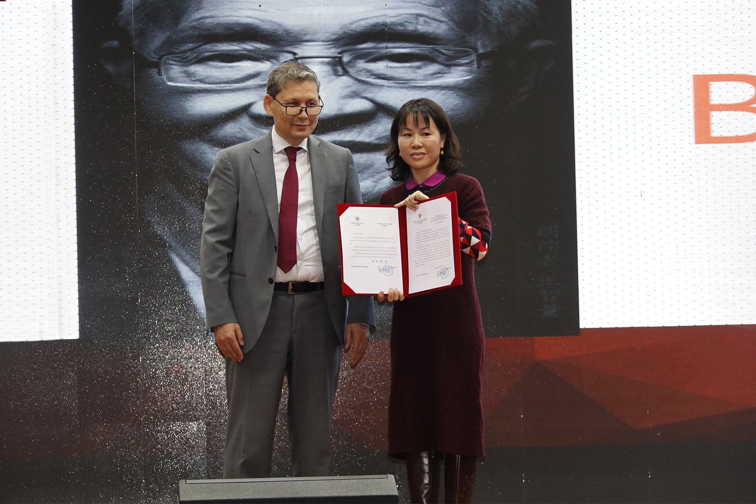 弗拉基米尔•奥谢普科夫总领事为王智量先生颁发感谢函,对他为俄语文学翻译事业所做出的贡献表示感谢。