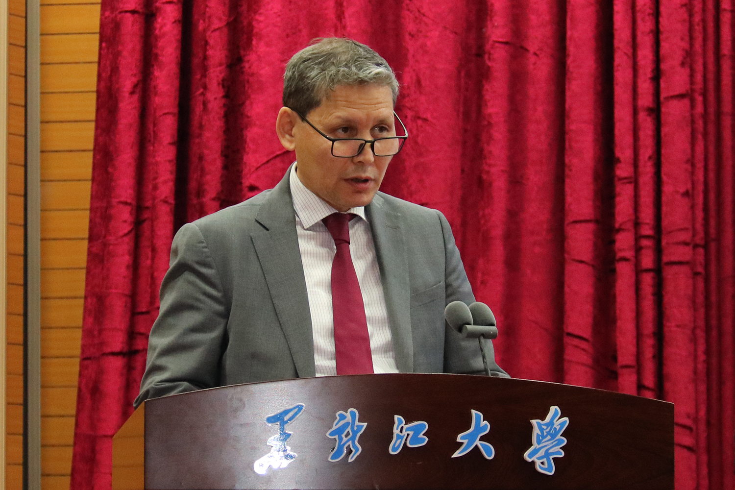 弗拉基米尔•奥谢普科夫总领事致辞。他回溯了中俄两国以往良好的交往历史,指出今天中俄两国关系达到了前所未有的高水平,两国元首的政治互信达到前所未有的新高度,两国互为彼此的战略协作伙伴,其中文学对两国的沟通与交流发挥着重要的作用。本次开展活动,有利于我们更好地了解彼此的文化,使我们的人民关系更加密切。